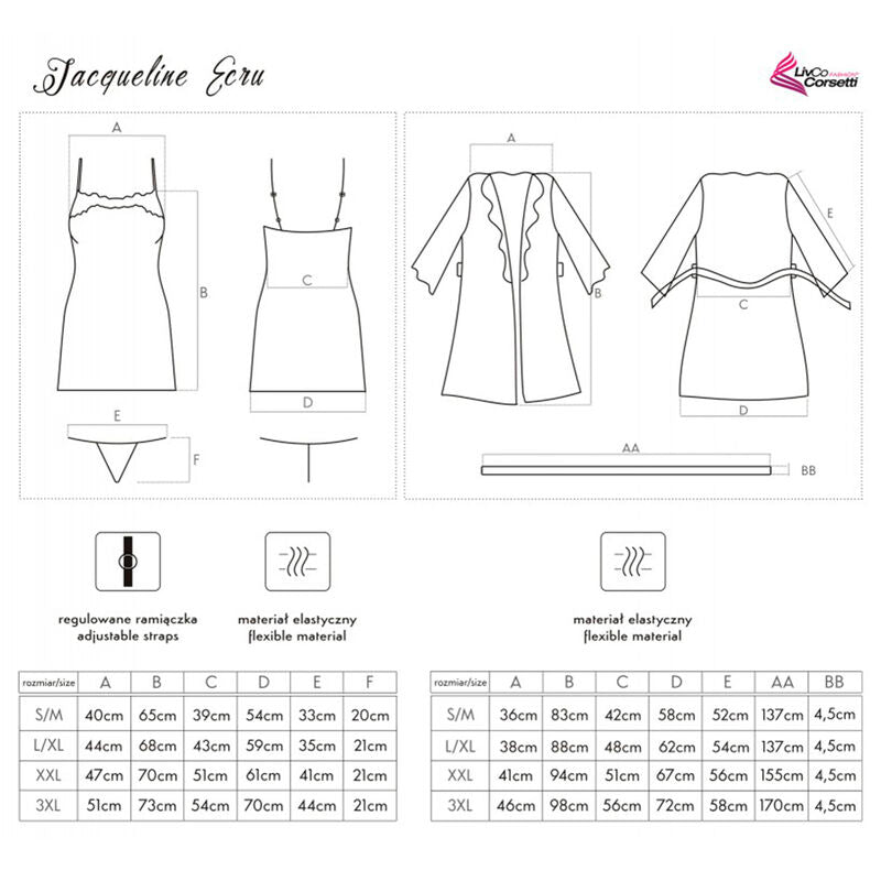 LIVCO CORSETTI FASHION - JACQUELINE LC 90249 ROUPO + CAMISA + CALCINHA ECRU S/M